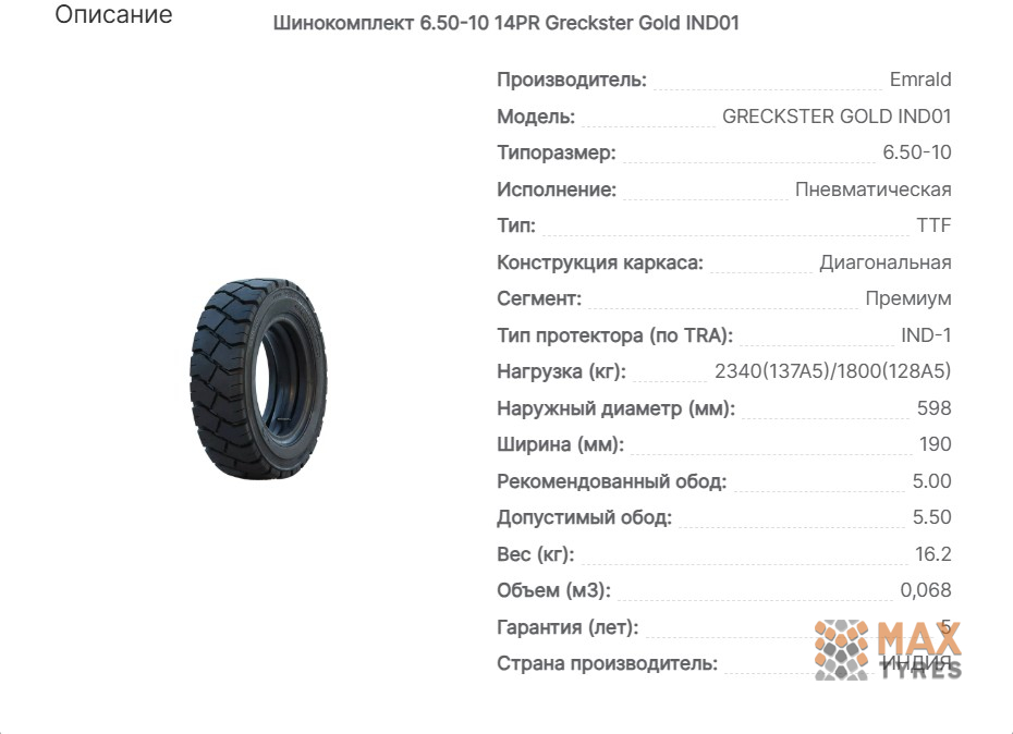 Шинокомплект 14PR Gold IND01